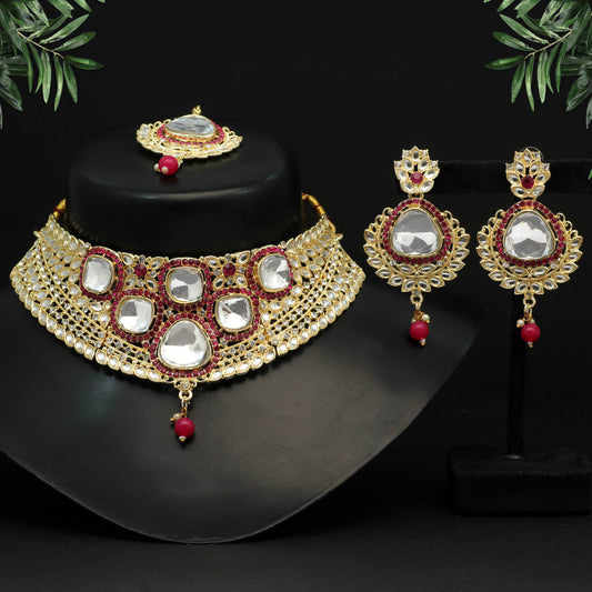 Pink Color Choker Kundan Necklace Set (KN1124PNK)
