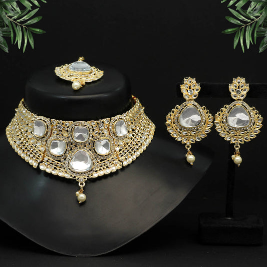 Gold Color Choker Kundan Necklace Set (KN1128GLD)