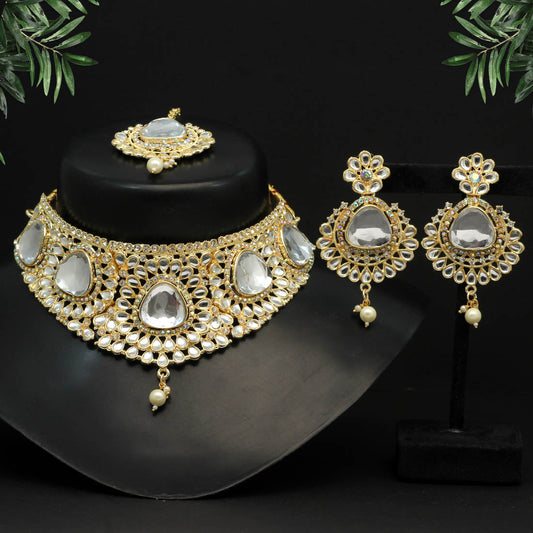 White Color Choker Kundan Necklace Set (KN1128WHT)