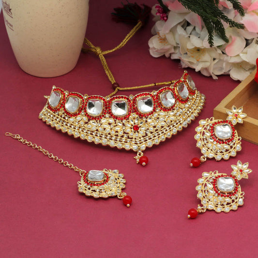 Red Color Choker Kundan Necklace Set (KN1126RED)