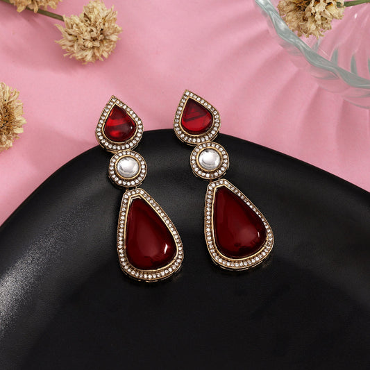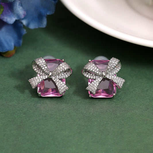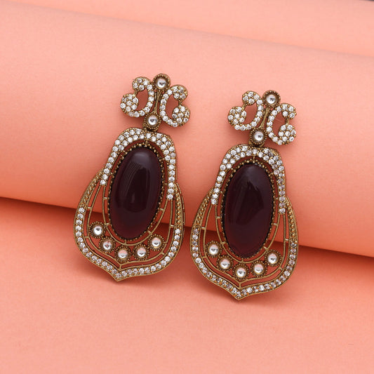 Pink Color Royal Look Handmade Jaipur Earrings On Brass Metal With American Diamond And Monalisa Stones Studded On Apala Polish