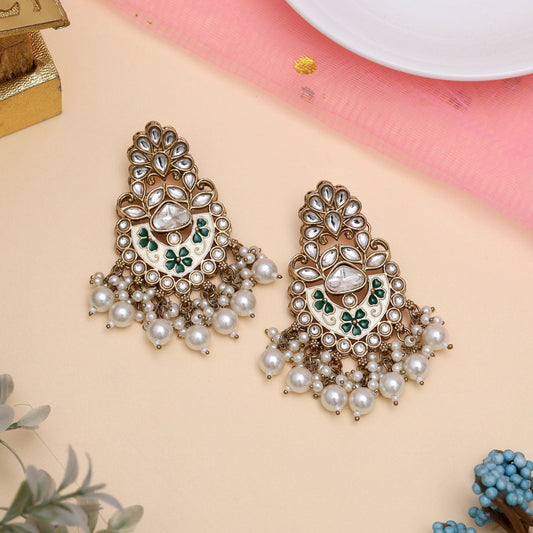 Green Color Hand Painted Meenakari Earrings (MKE1952GRN)