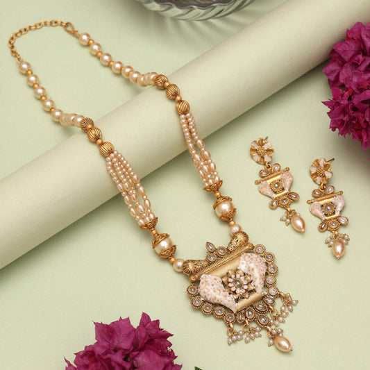 Gold Color Meena Work Matte Gold Rajwadi Temple Necklace Set (TPLN690GLD)