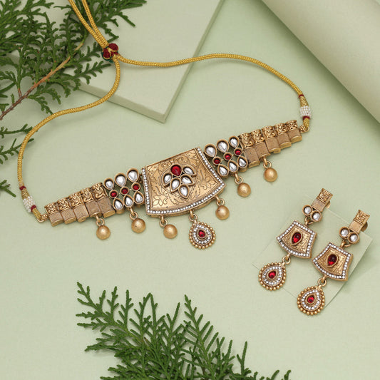 Rani & Green Color Choker Matte Gold Rajwadi Temple Necklace Set (TPLN680RNIGRN)