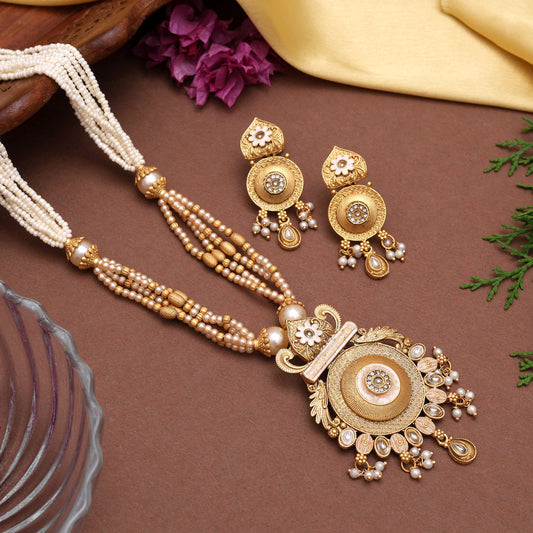 Gold Color Matte Gold Rajwadi Temple Necklace Set (TPLN659GLD)