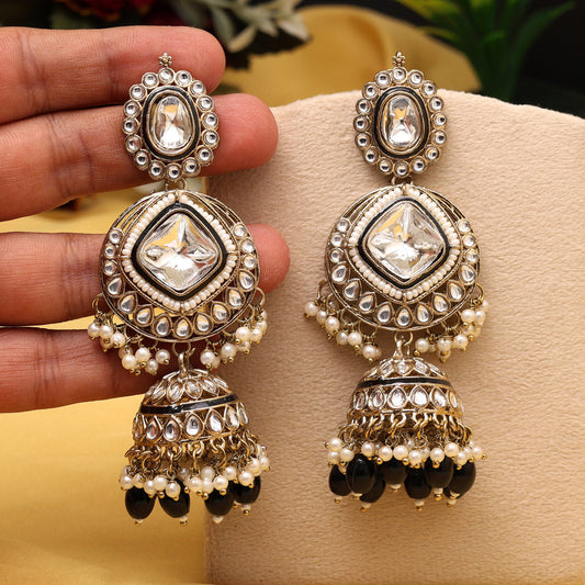 Black Color Kundan Earrings (KDE983BLK)