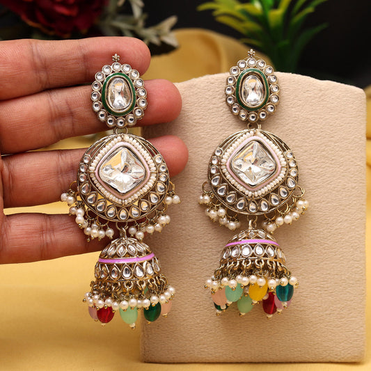 Multi Color Kundan Earrings (KDE983MLT)