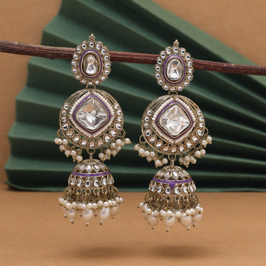Purple Color Kundan Earrings (KDE983PRP)