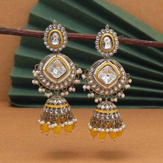 Yellow Color Kundan Earrings (KDE983YLW)