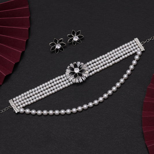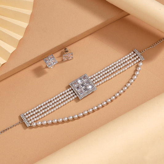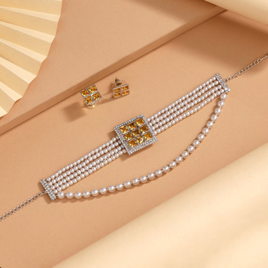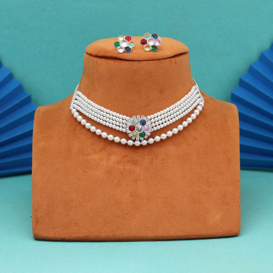 White Color Choker Stone Necklace Set