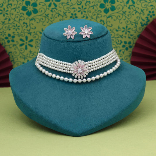 Baby Pink Color Choker Stone Necklace Set (STN244BPNK)