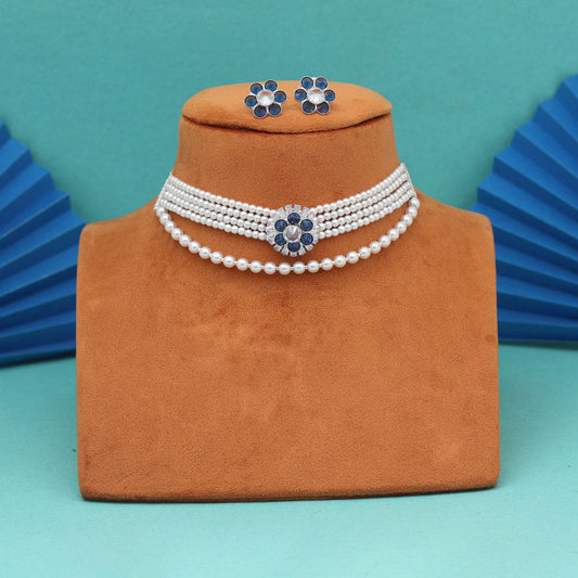 Blue Color Choker Stone Necklace Set (STN244BLU)