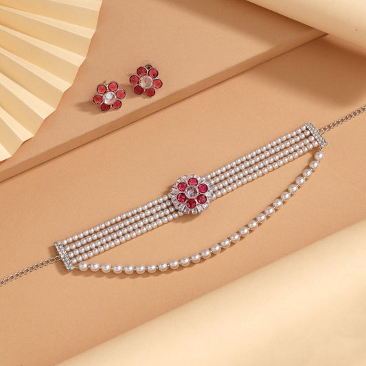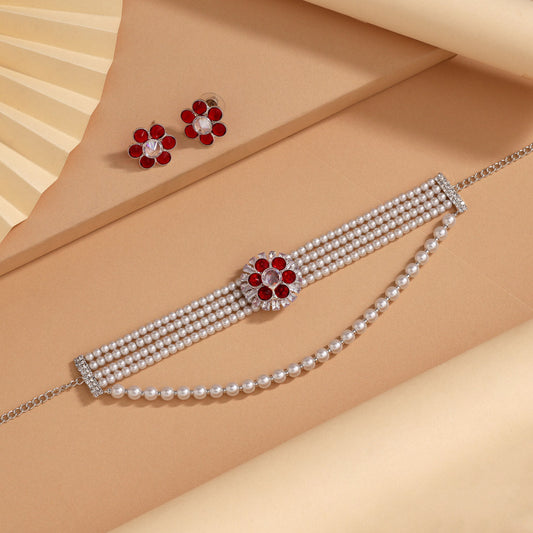 Red Color Choker Stone Necklace Set (STN245RED)