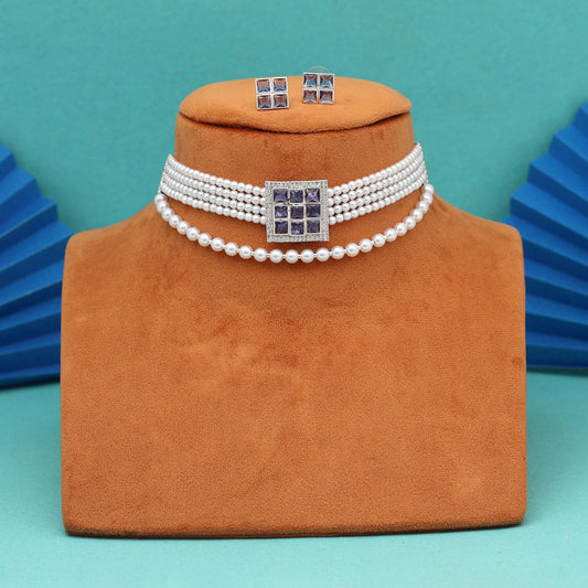 Light Purple Color Choker Stone Necklace Set