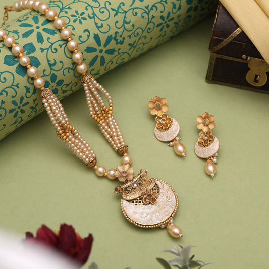 Gold Color Meena Work Matte Gold Rajwadi Temple Necklace Set (TPLN722GLD)
