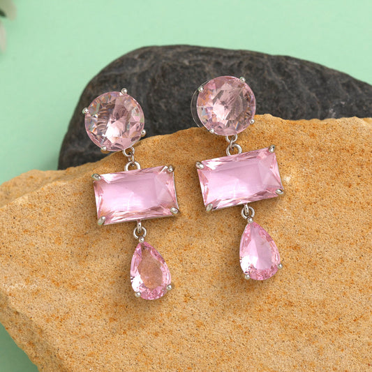 Sold outPink Color American Diamond Earrings