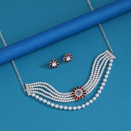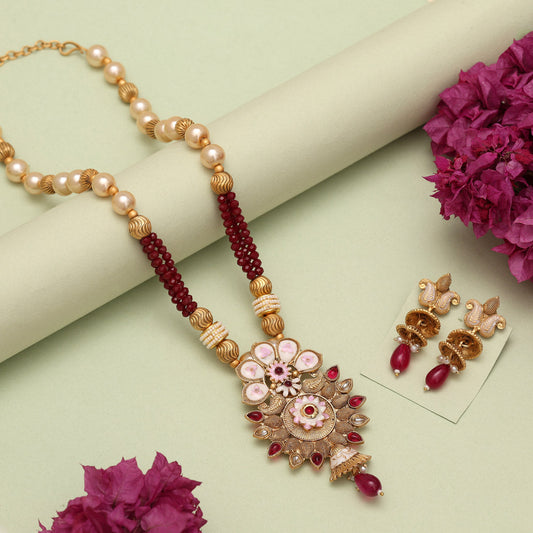 Maroon Color Matte Gold Meenakari Necklace Set (MKN609MRN)