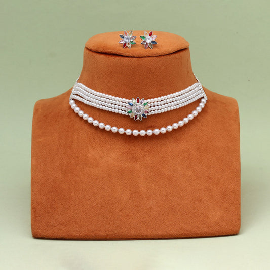 Gold Color Matte Gold Meenakari Necklace Set (MKN609GLD)