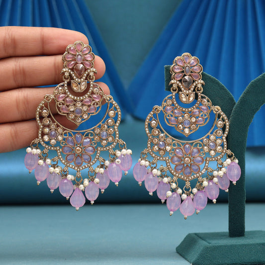 Light Purple Color Kundan Earrings (KDE983LPRP)