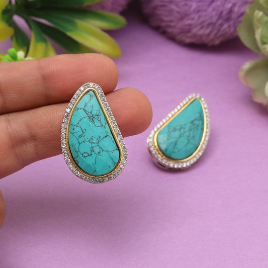 Turquoise Blue Color Kundan Earrings (KDE938TBLU)