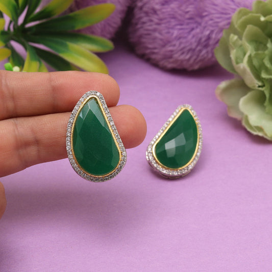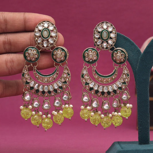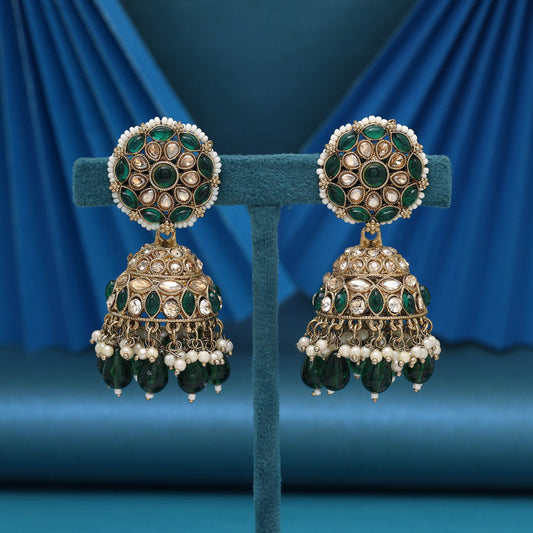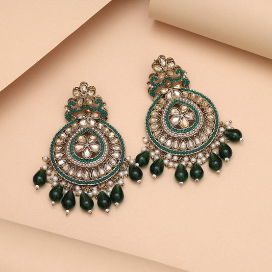 Green Color Kundan Pakistani Earrings (KDE981GRN)