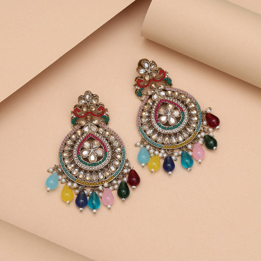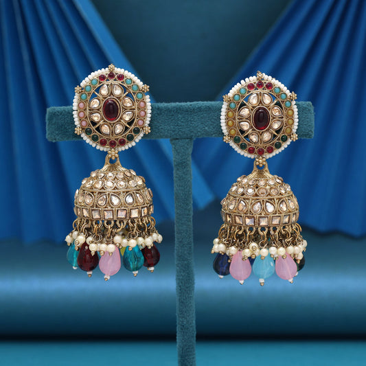 Blue Color Kundan Pakistani Earrings (KDE981BLU)