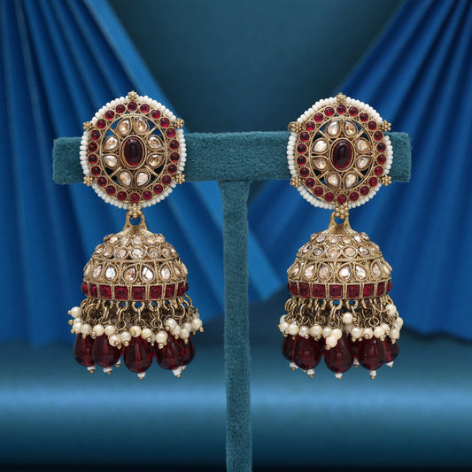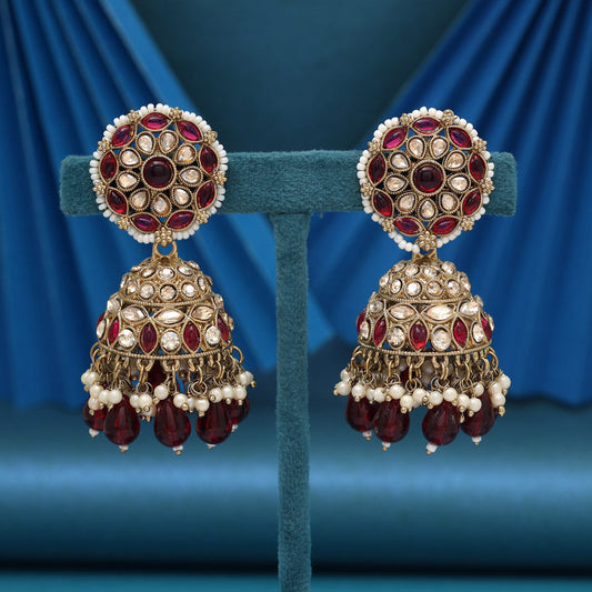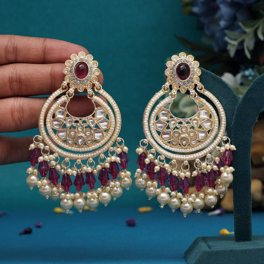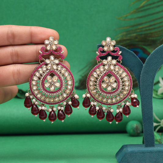 Maroon Color Kundan Pakistani Earrings (KDE981MRN)