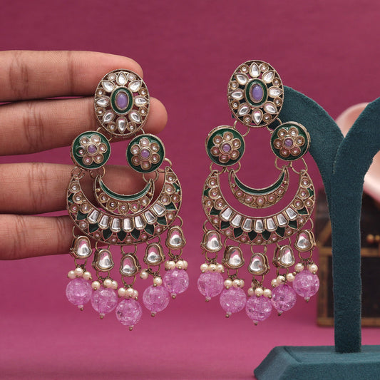 Pink Color Kundan Pakistani Earrings (KDE981PNK)