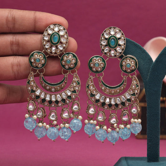 Sky Blue Color Kundan Earrings (KDE938SBLU)