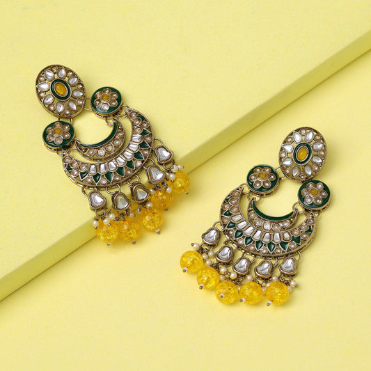 Parrot Green Color Kundan Earrings (KDE938PGRN)