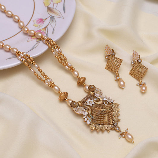Gold Color Meena Work Matte Gold Rajwadi Temple Necklace Set (TPLN693GLD)