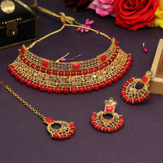 Red Color Choker Kundan Necklace Set (KN1149RED)