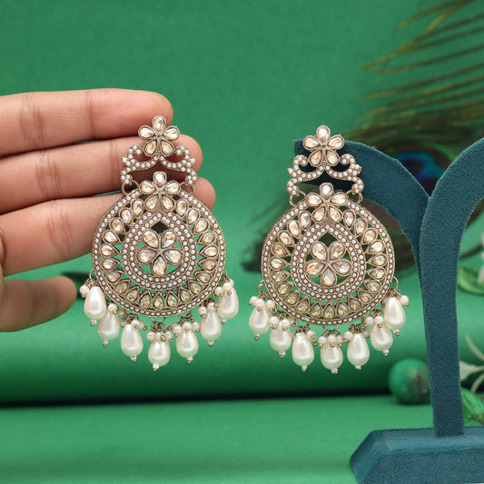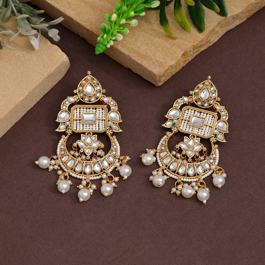 White Color Kundan Pakistani Earrings (KDE981WHT)