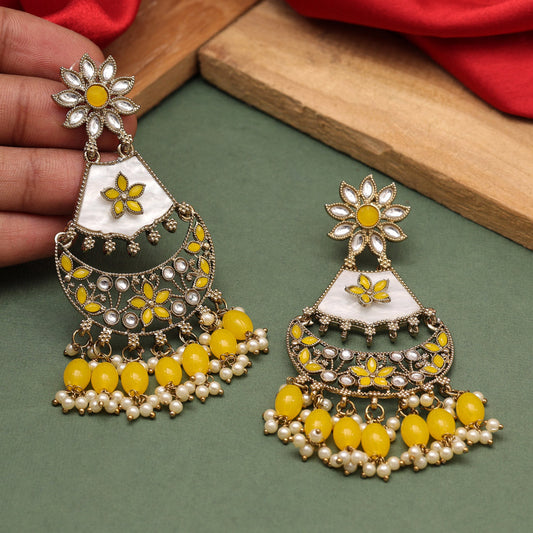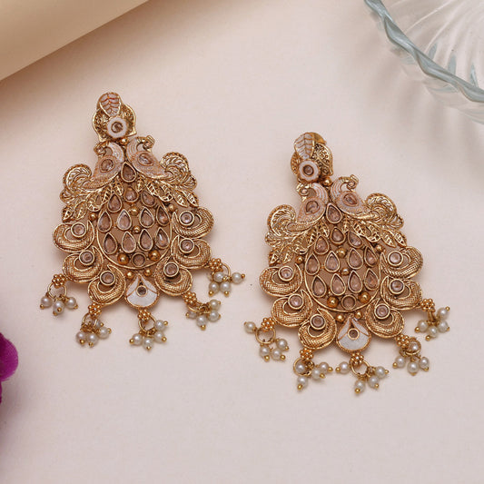 White Color Kundan Meenakari Earrings (MKE2005WHT)