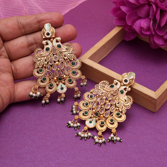 Green Color Rajwadi Matte Gold Earrings (MGE317GRN)