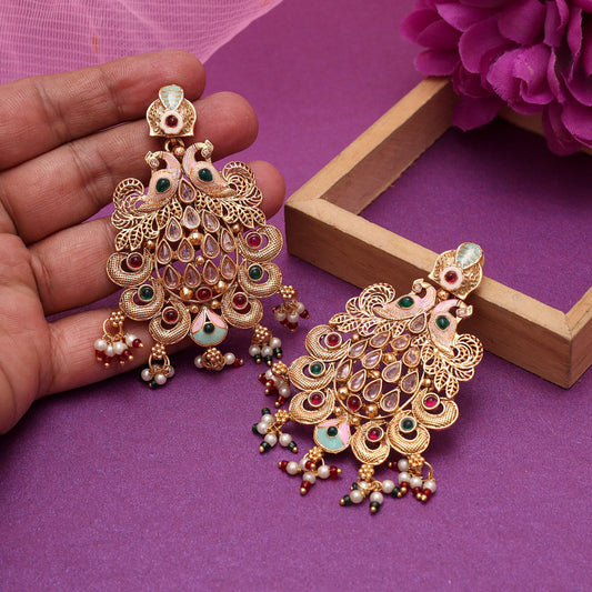 Green Color Kundan Meenakari Earrings (MKE2005GRN)