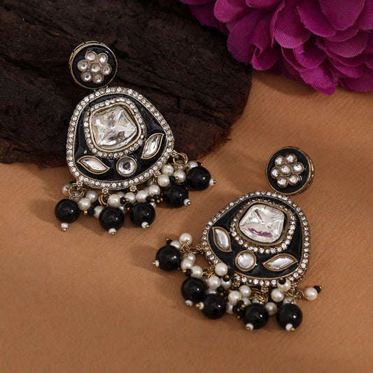 Black Color Kundan Meenakari Earrings (MKE2005BLK)