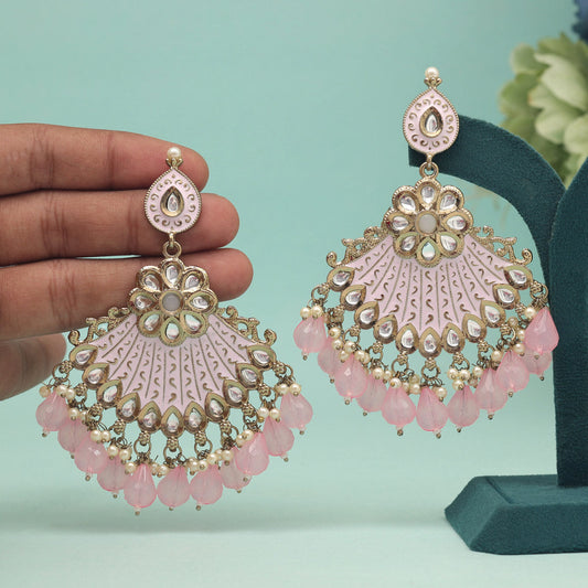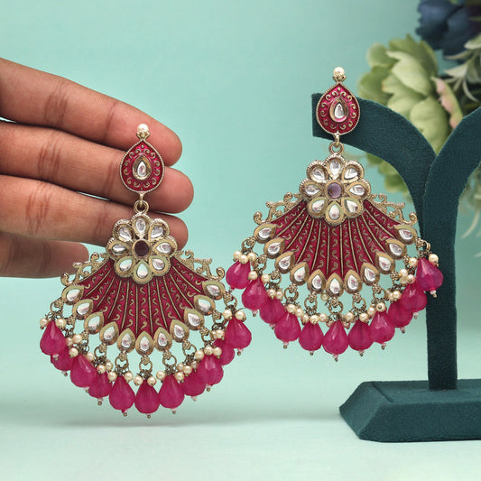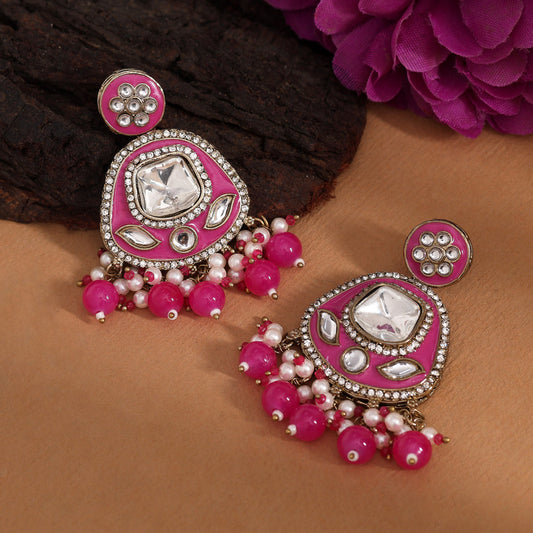 Pink Color Kundan Meenakari Earrings (MKE2005PNK)