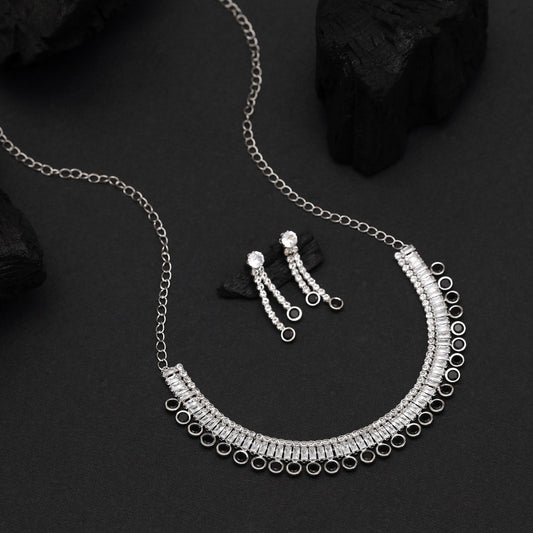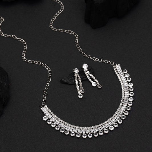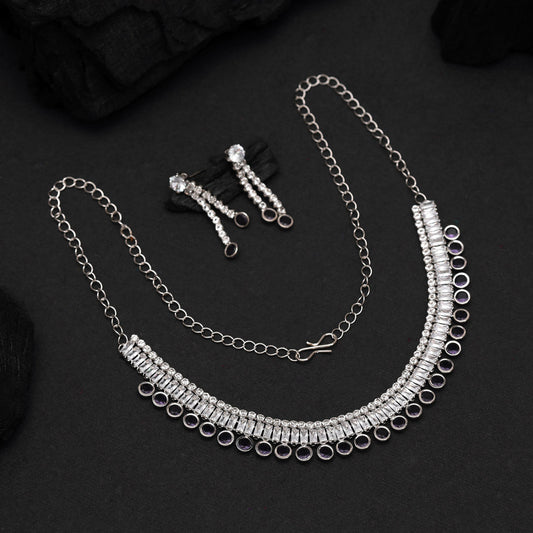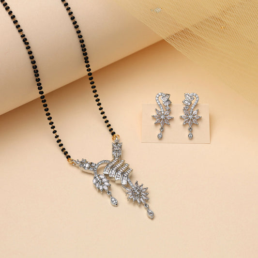 Silver Color American Diamond Mangalsutra With Earrings (MS359SLV)