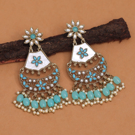 Turquoise Blue Color Kundan Meenakari Earrings (MKE2005TBLU)