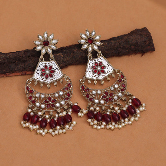 Maroon Color Kundan Meenakari Earrings (MKE2005MRN)