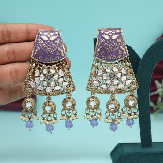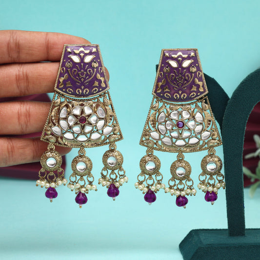 Purple Color Meena Work Kundan Earrings (KDE1022PRP)