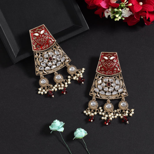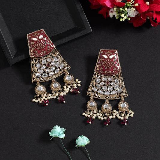 Maroon Color Kundan Earrings (KDE1000MRN)