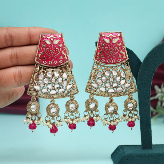 Magenta Color Meena Work Kundan Earrings (KDE1023MNT)