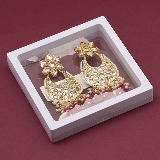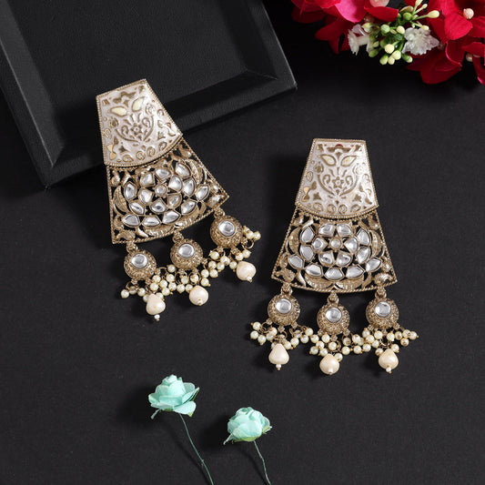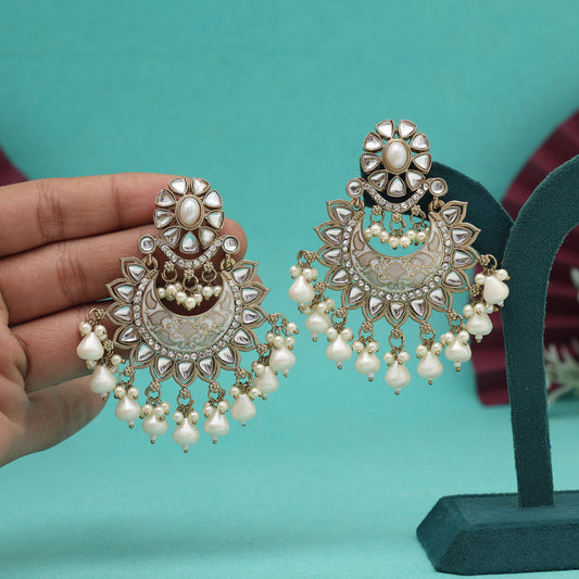 White Color Meena Work Kundan Earrings (KDE1022WHT)