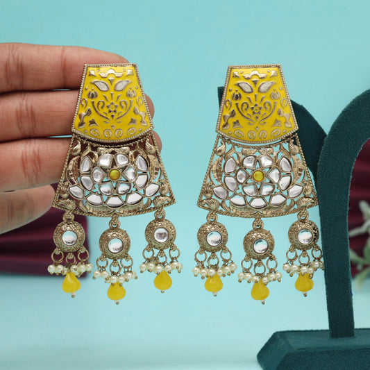 Yellow Color Meena Work Kundan Earrings (KDE1022YLW)