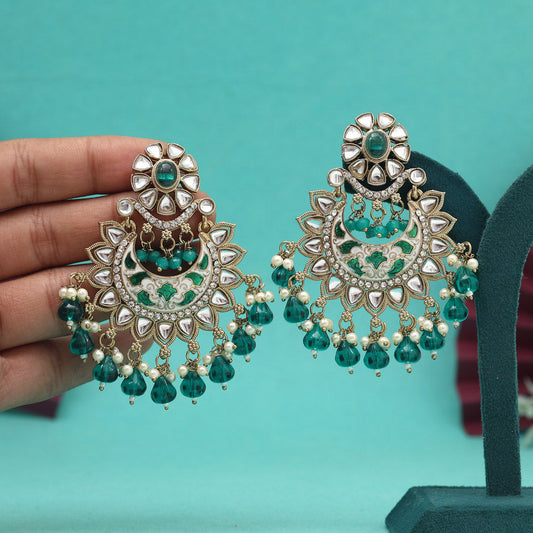 Rama Green Color Kundan Earrings (KDE1000RGRN)