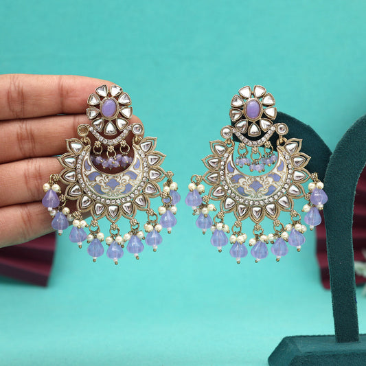 Light Purple Color Kundan Earrings (KDE1000LPRP)