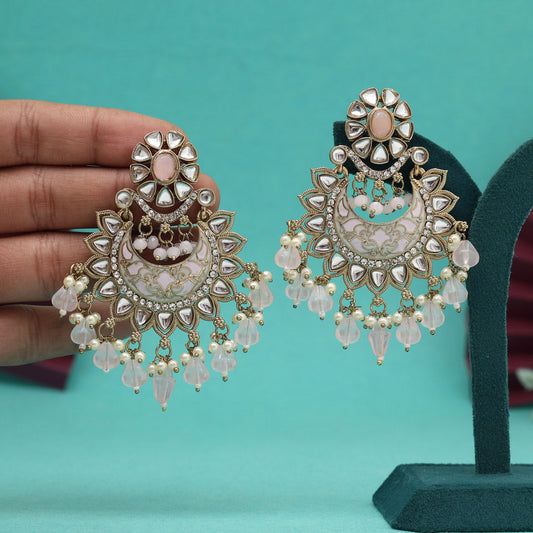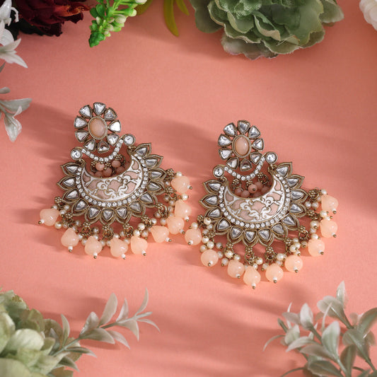 Peach Color Meena Work Kundan Earrings (KDE1022PCH)