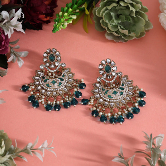 Turquoise Blue Color Kundan Earrings (KDE1000TBLU)